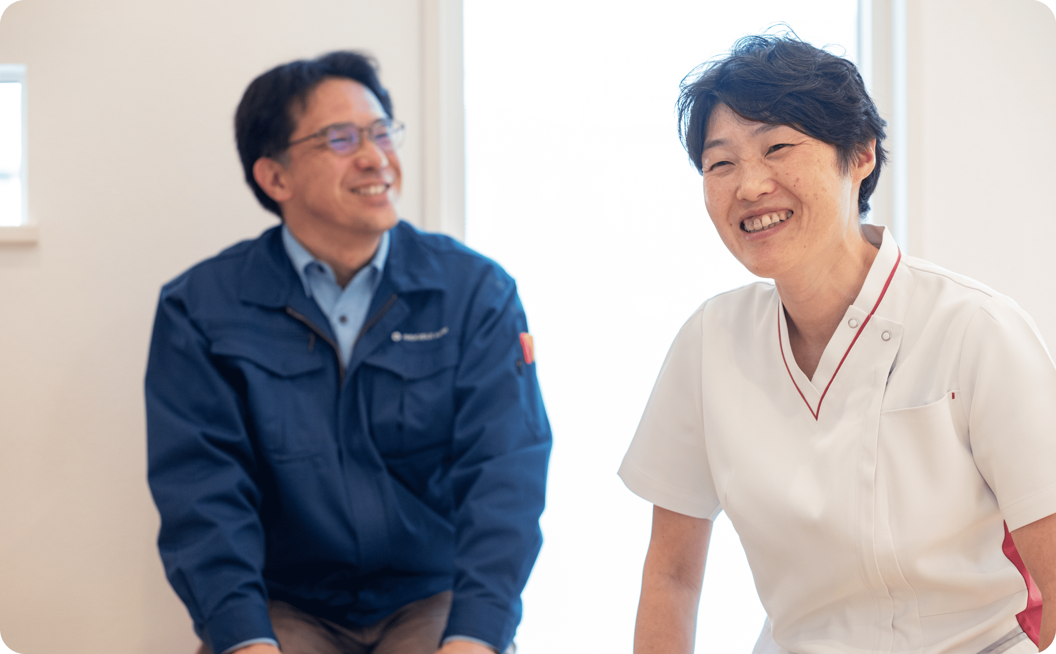 Q 05増築した新しいスタッフルームと院長室のこだわりを教えてください。スタッフルームは、スタッフが休憩時間にリラックスできるように広めに設計してもらいました。室内の更衣スペースについては、壁をつくるのではなく、ロールスクリーンで目隠しをすることで、空間を柔軟に使えるようになっています。