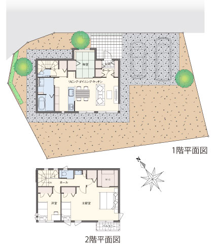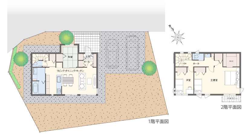 「ぶどうの郷」では、秩序ある市街地形成を目指すために地区計画が定められています。ゆとりある良好な住環境の整ったまちづくりを目指し、建物の用途、敷地面積の最低限度、壁面の位置などが規定され、魅力あるまちなみの形成と、日照・通風の確保など良好な居住環境の維持・保全を図っています。