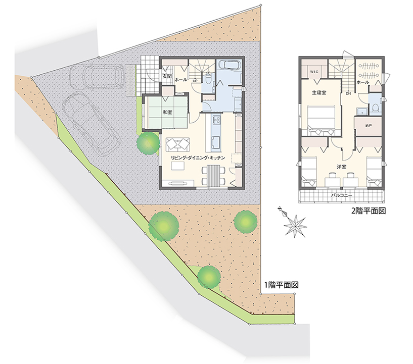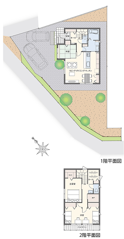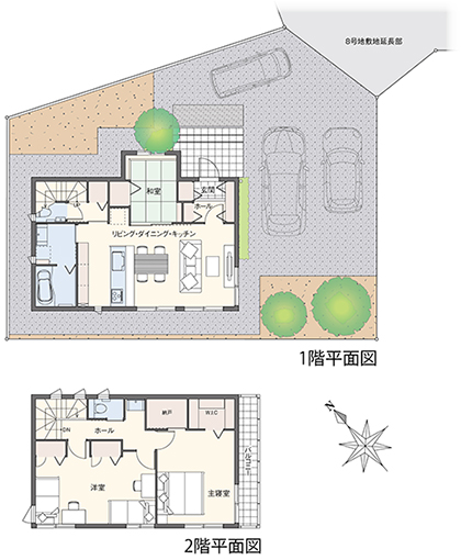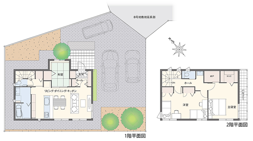 「ぶどうの郷」では、秩序ある市街地形成を目指すために地区計画が定められています。ゆとりある良好な住環境の整ったまちづくりを目指し、建物の用途、敷地面積の最低限度、壁面の位置などが規定され、魅力あるまちなみの形成と、日照・通風の確保など良好な居住環境の維持・保全を図っています。