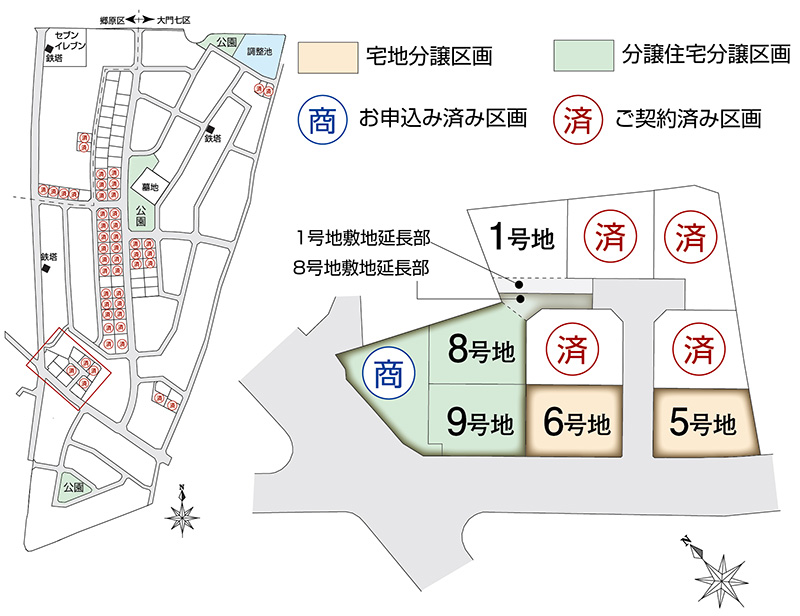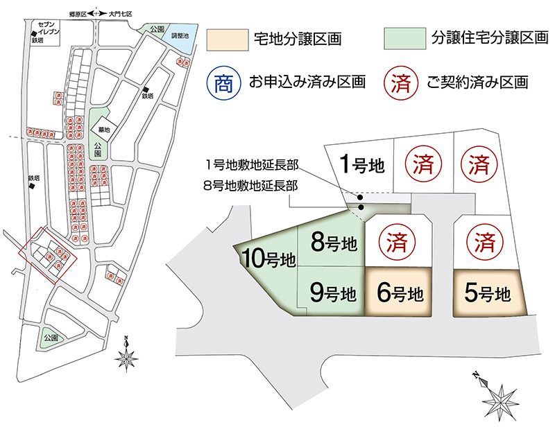 「スマートハイムプレイス塩尻市ぶどうの郷Ⅹ」が位置するのは、総面積約13.7ha、計画人口740人(280戸)、道路や公園、上下水道などの供給処理施設が一体的に整備された大規模な区画整理事業地内です。JR「塩尻」駅に近接しながらも落ち着いた生活環境であることから、土地区画整理事業認可から8年足らずで、住宅が建ち並び、商業施設や医療機関の開業が相次ぎ、塩尻市の「居住誘導区域」にも指定されました。新しい街の魅力を十分に感じさせてくれるロケーションです。