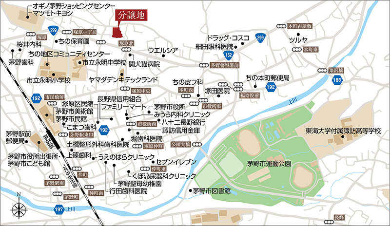 | 交通 | JR中央本線「茅野」駅へ徒歩11分 |