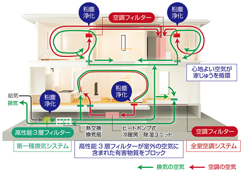 抗ウイルス加工フィルター(※1)を採用した換気・空調システム「快適エアリーT-SAS」をはじめ先進のホームセキュリティが豊かな日々の暮らしを実現します。