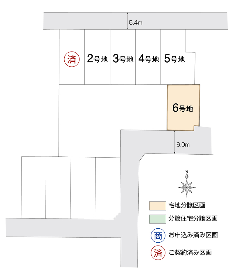 | 6号地 | 160.62㎡(約48.58坪) | 1,067万円 |