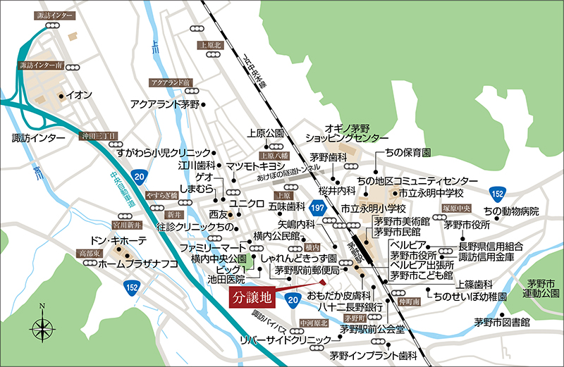 | 交通 | JR中央本線「茅野」駅へ徒歩6分 |