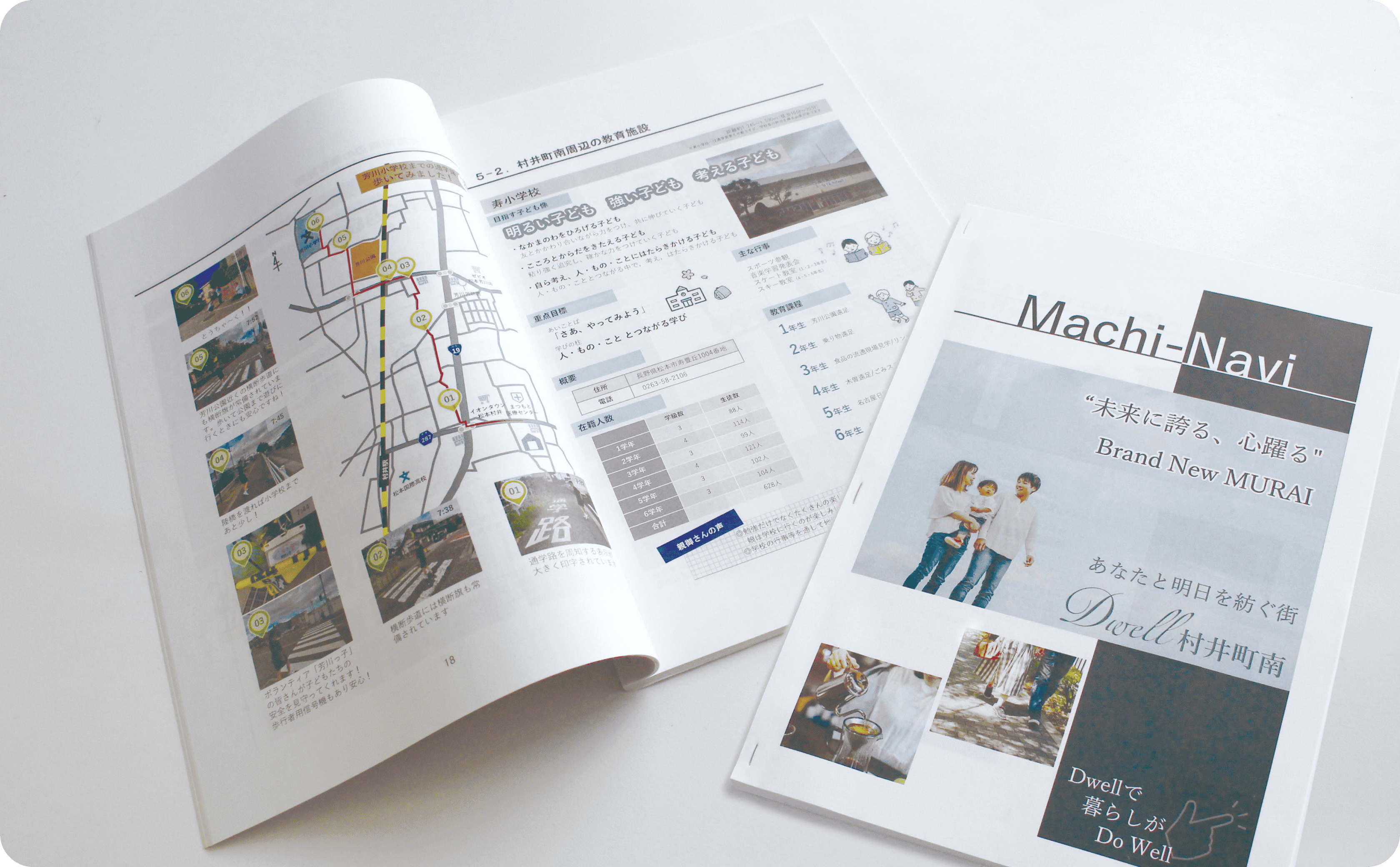 お客様に生活のイメージを深めていただくために、地域の魅力や利便性を伝える冊子を、当展示場メンバー全員で作成しました。飲食店を訪問して実際に食べてみたり、小学校の通学路を朝に実際に歩いてみたりなど、体験をベースにした日常のリアル情報をご提供しています。