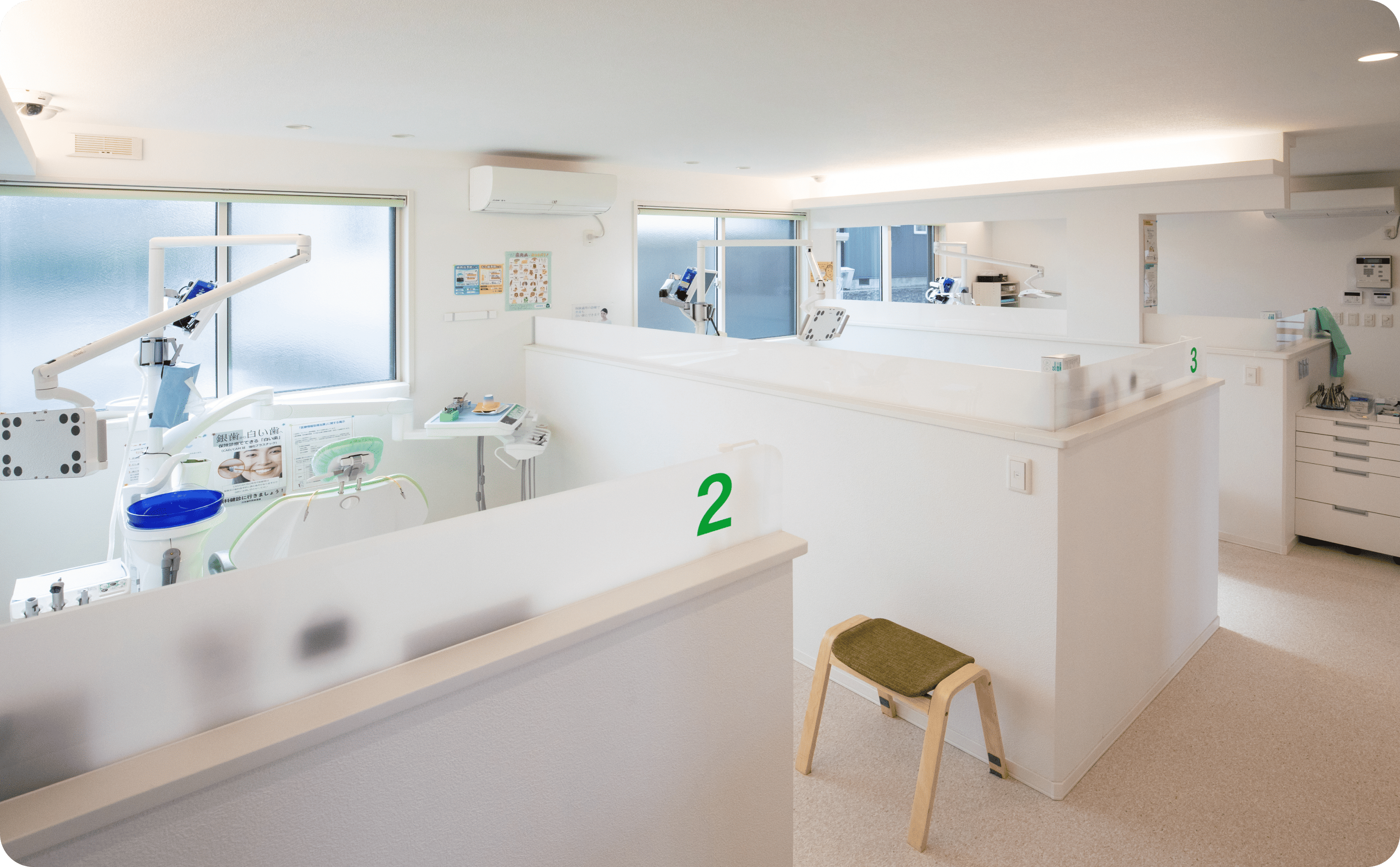 各診療ブースにいるすべての患者さんの状況を、常に把握できるような環境を整えたことです。患者さんのプライバシーを守りながらも、目が届くような高さのパーテーションを設置して、3つの診療ブースをつくりました。